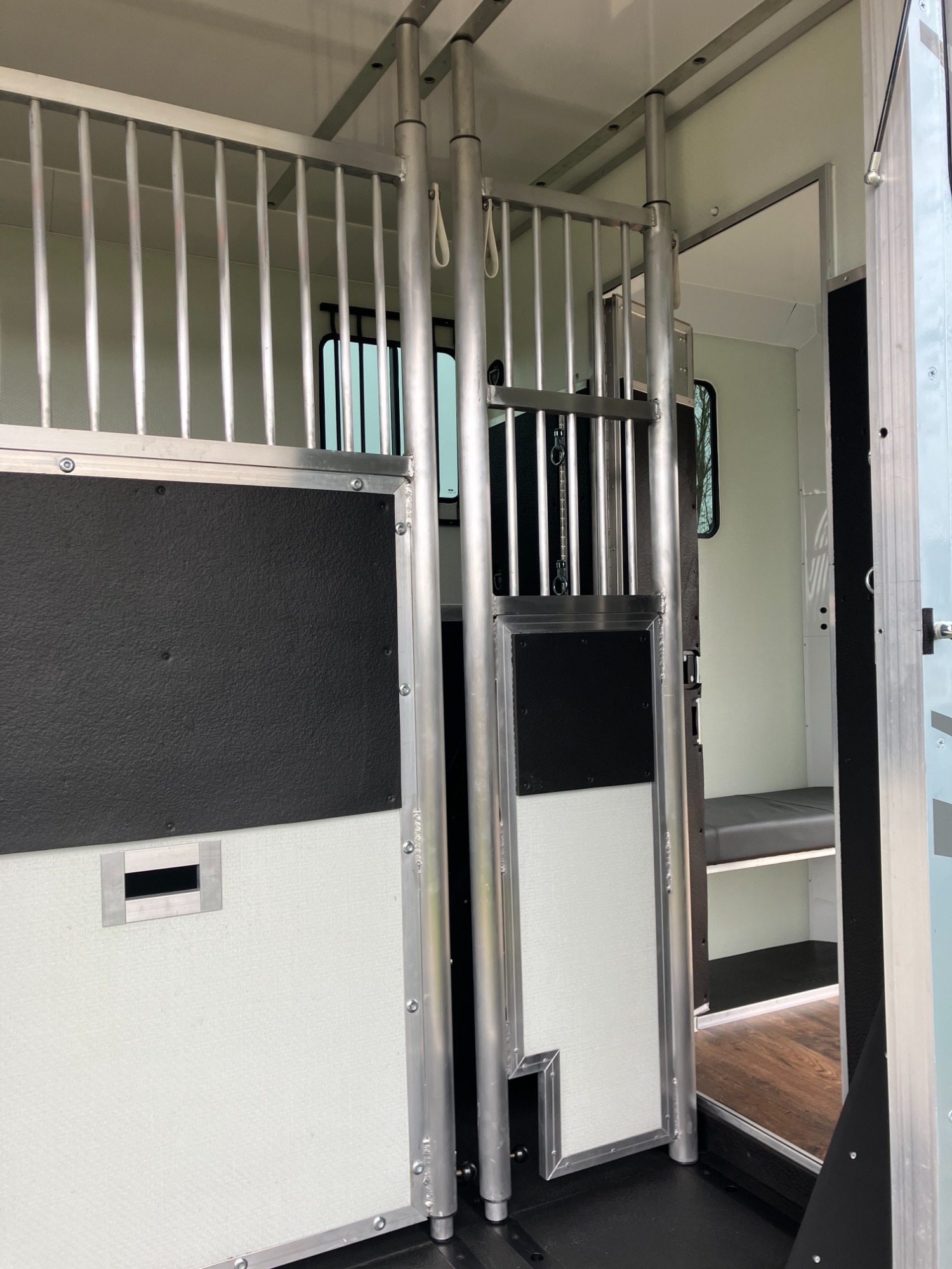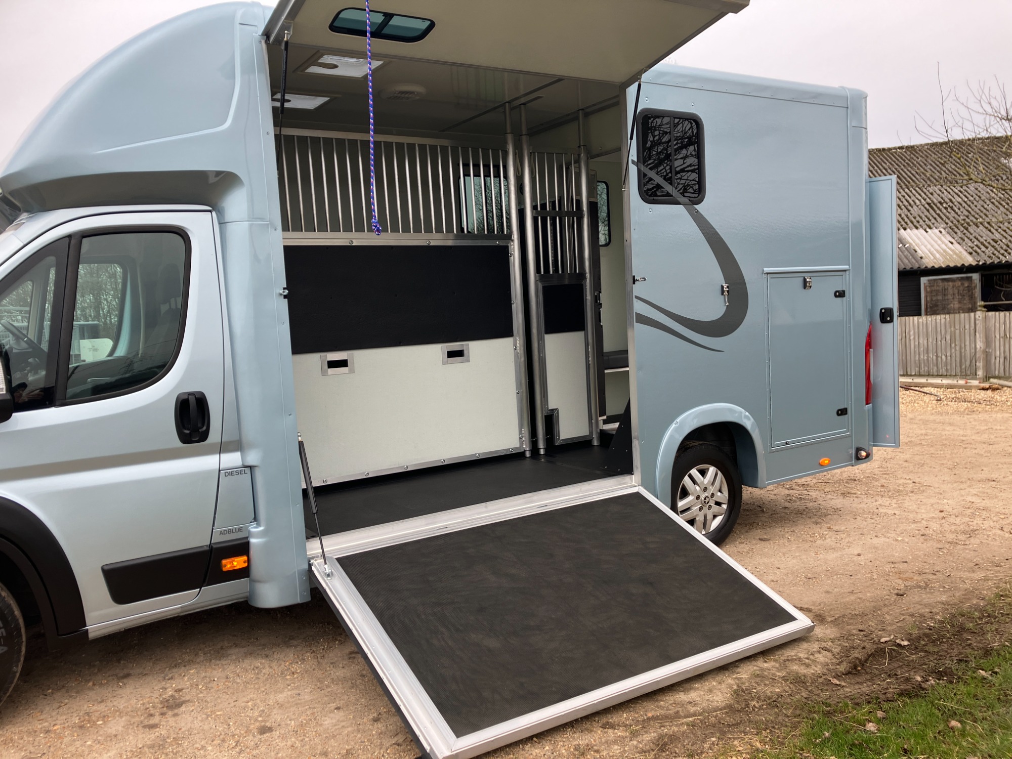2 stall rear facing, Padded Partition, Full Bulkhead, EVA floor matting, Impact matting on walls, D-rings to suit, Non slip matting on ramp, Choice of ramp doors, horse and reverse camera.